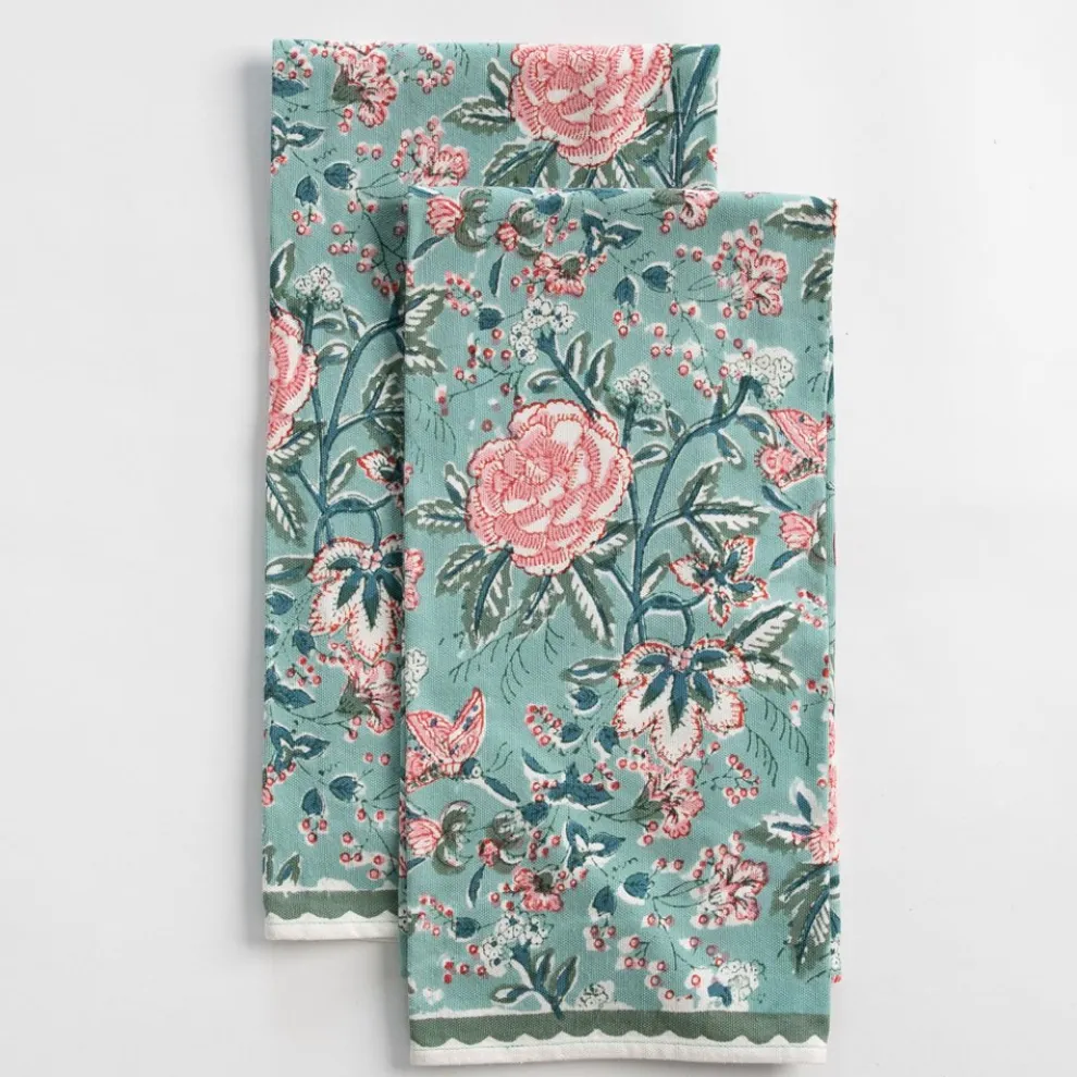 Brighten up your kitchen with the Butterfly Garden Aqua & Rose Tea Towels. This set of tea towels features a lovely butterfly and rose design in delicate aqua and rose hues, adding a touch of charm and elegance to your kitchen chores. These tea towels are perfect for drying dishes, wiping counters, and adding a decorative accent to your kitchen. Practical and pretty, they are a must-have for any home.