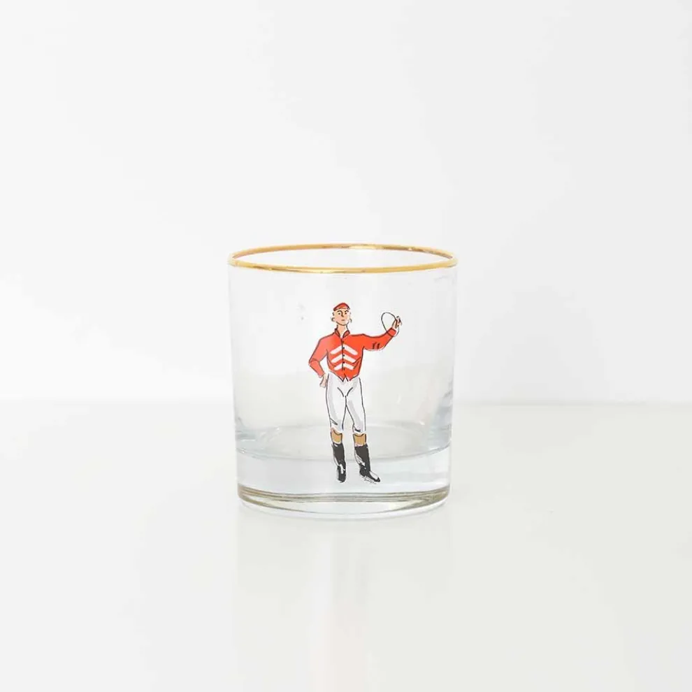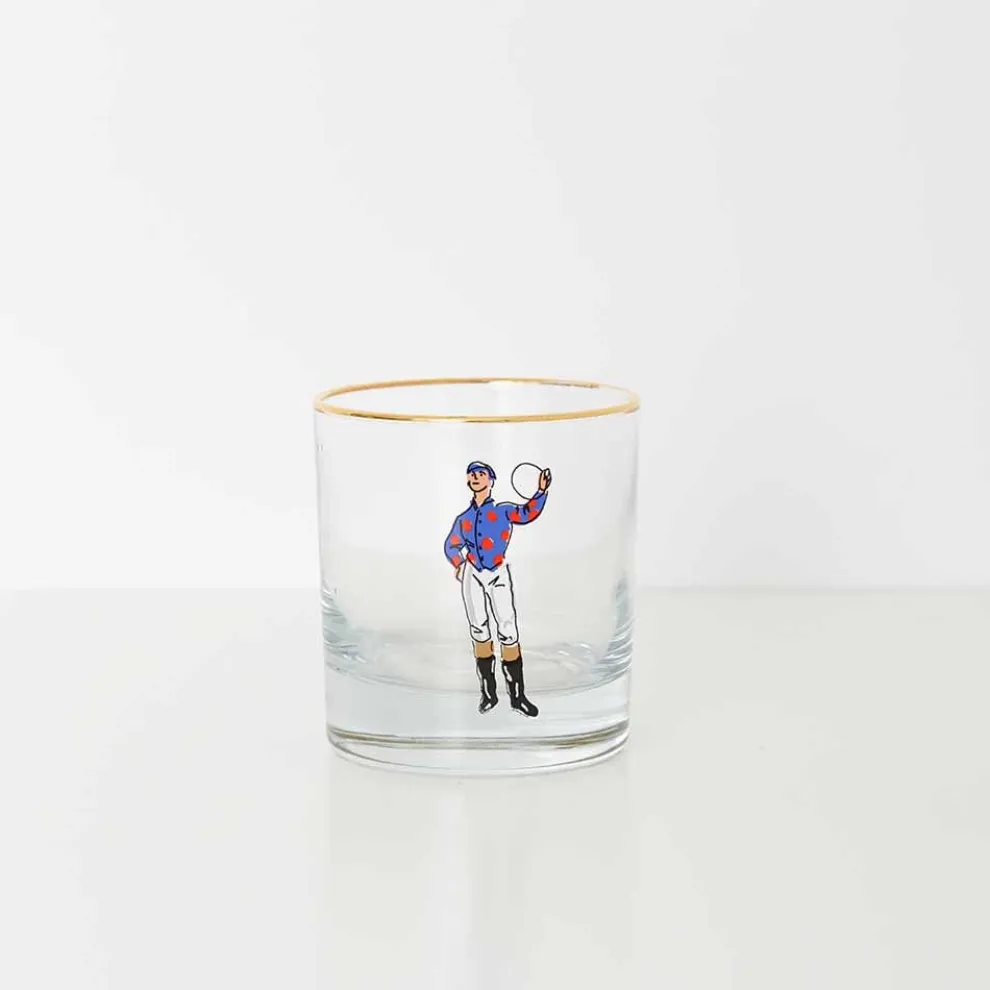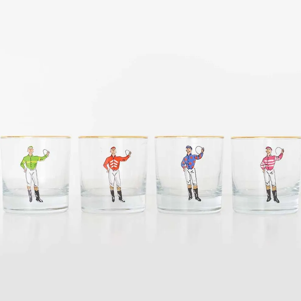 Off to the races! For the equestrian enthusiast, elevate your barware collection with our Jockey Glassware. Featuring four unique jockeys in bright colored silks and a gold metallic rim, this glass brings sophistication to everyday and formal gatherings.