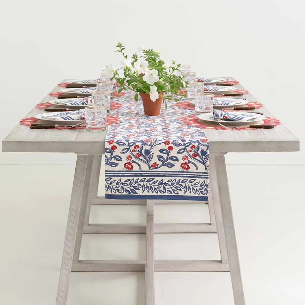 Emma Red & Blue Table Runner