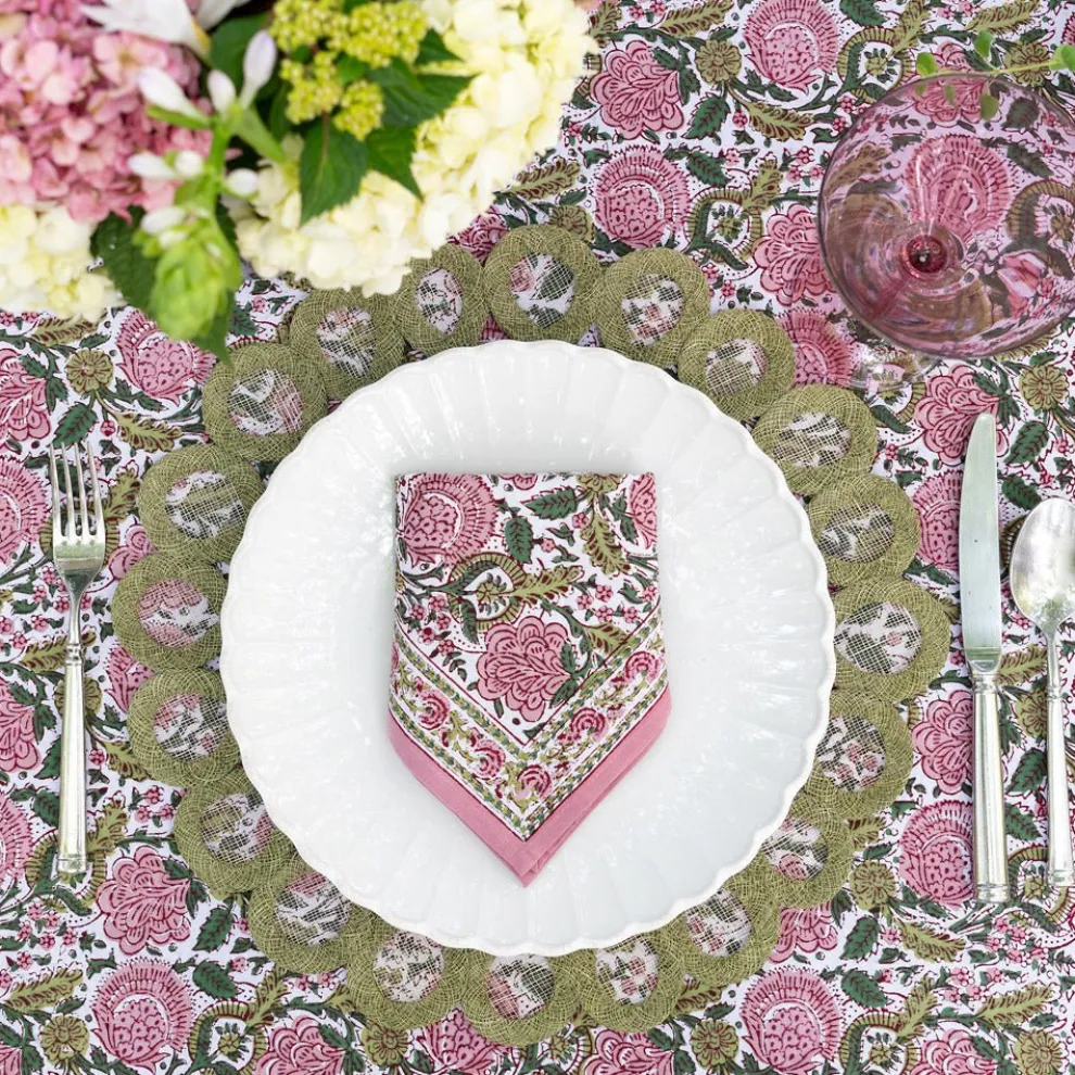 Our exclusive Woven Doodle Placemat in Fern will add just the right amount of fun & festivity to your table! These round natural fiber placemats wipe clean with a damp cloth so they are practical for everyday use, yet they remain elegantly refined for your finest dinner party. Semi-transparent natural fiber with a hand-appliquéd border are woven together to create the perfect frame for each plate at your table.