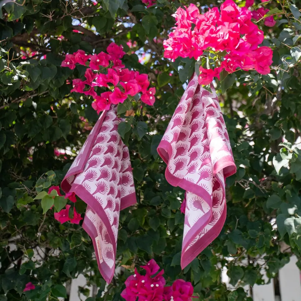 Add a touch of bohemian flair to your dining experience with our Geo Feather Fuchsia Napkins! These hand block printed cloth napkins feature a unique feather print in vibrant fuchsia, perfect for adding a pop of fun and color to your table setting!
