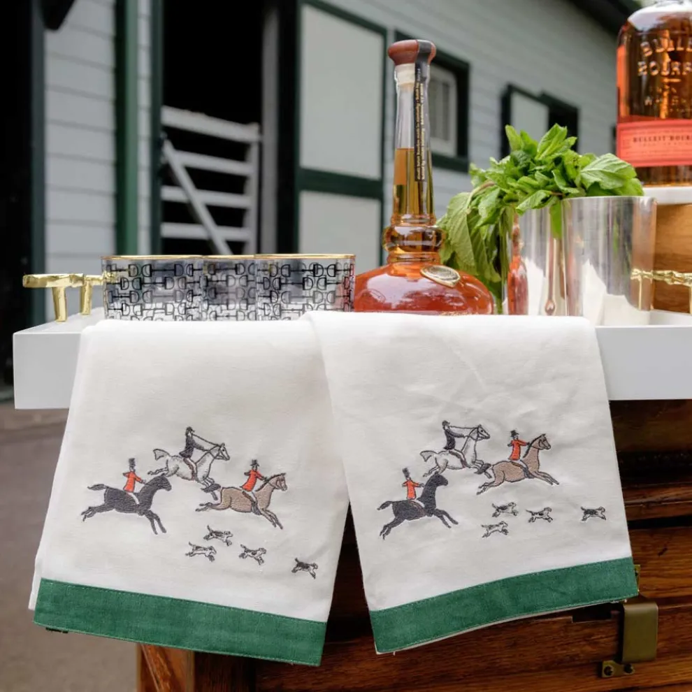 Hunt Scene Embroidered Horse and Rider Tea Towels