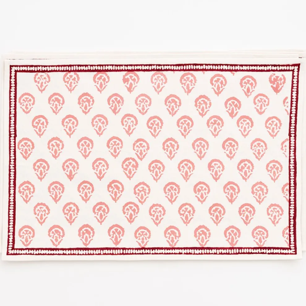 This beautiful set of 100% cotton hand blocked printedplacemats in Carnation Blushis intended to be mixed haphazardly together with the other patterns, just as our families are.