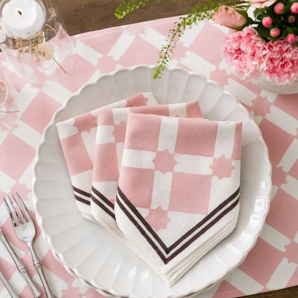 OurLatticework Blush Cloth Napkins wereinspired by memories of falling in love.Crafted with care and attention to detail, each 100% cotton cloth napkin features a delicate lattice pattern that evokes charm and sophistication.