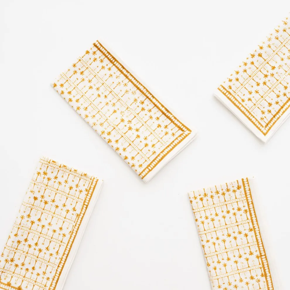 This beautiful set of 100% cotton hand blocked printed napkins in Palm AvenueGolden is intended to be mixed haphazardly together with the other patterns, just as our families are.