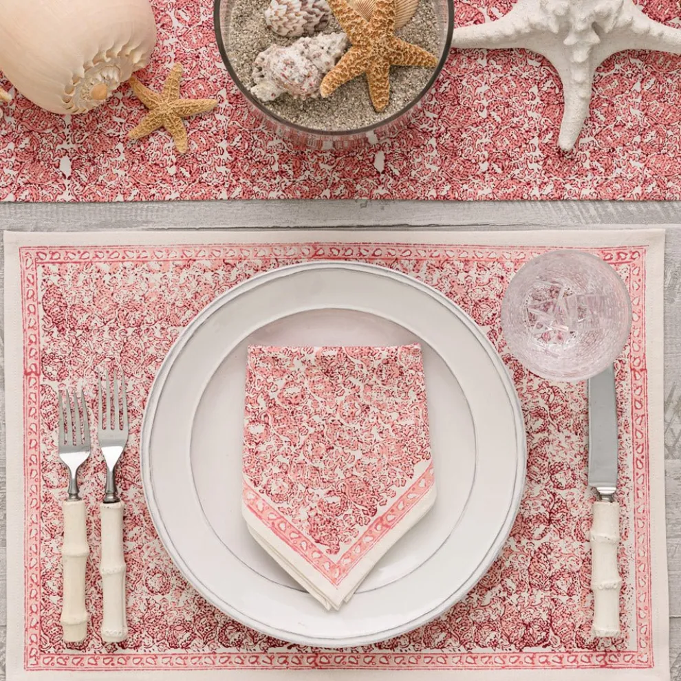 This beautiful set of 100% cotton hand blocked printedplacemats inSeashell Blush is intended to be mixed haphazardly together with the other patterns, just as our families are.