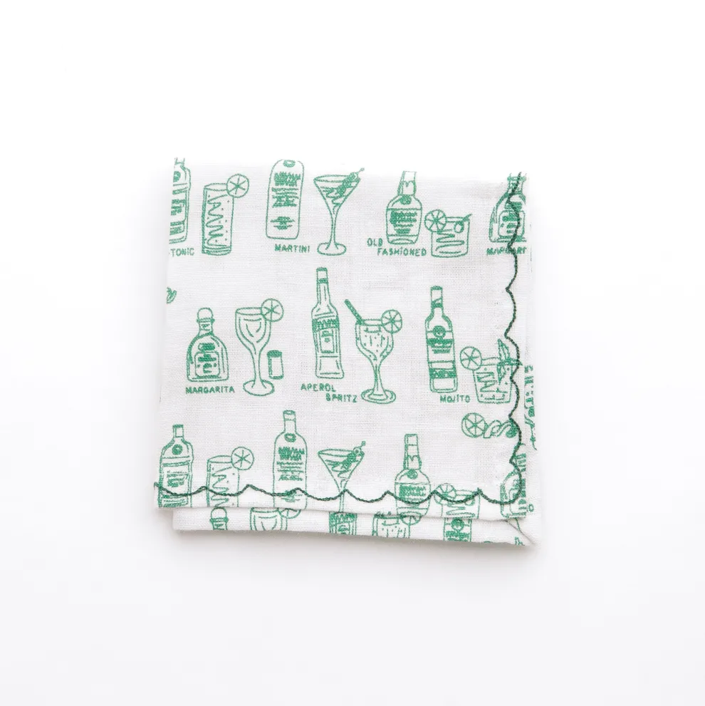 Liven up your cocktail parties with this fun set of Printed Mixed Drink Cocktail Napkins. Each of the six linen napkins showcases a cocktail-inspired design in vibrant colors featuring iconic drinks like the martini, margarita, mojito, gin & tonic, Aperol spritz, and old fashioned. These charming napkins are perfect for entertaining or gifting to any cocktail connoisseur.