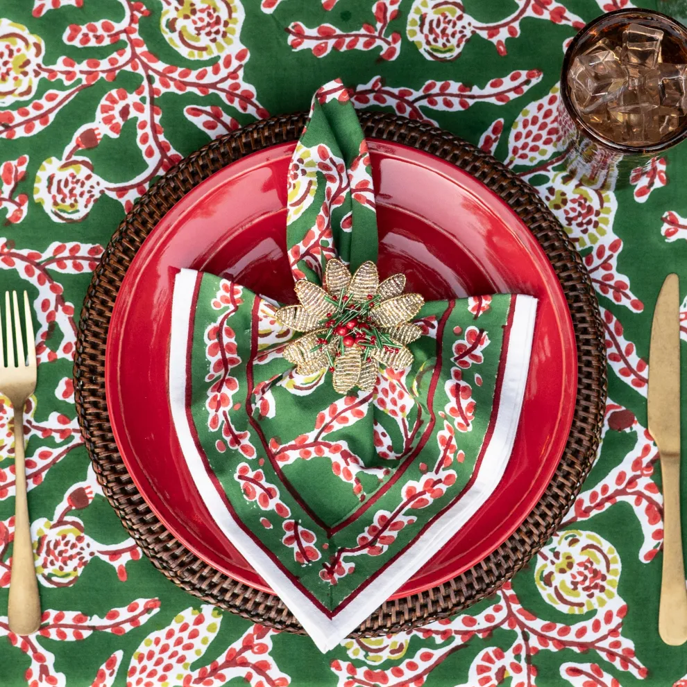 Bring cheer to your table with this Set of 4 Multi Flower Beaded Napkin Rings. Featuring an eye-catching blend of red, green, and gold beads shaped into festive flowers, these rings add a fun and festive touch to your seasonal or every day gatherings.