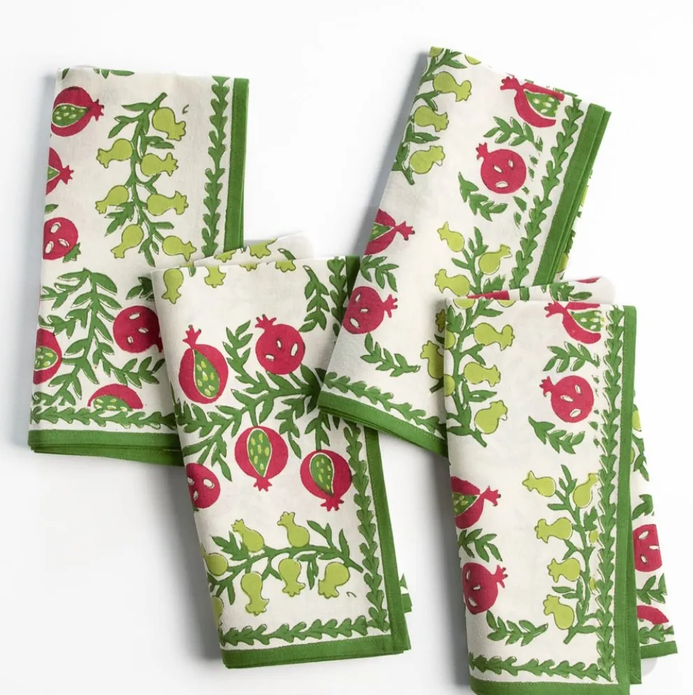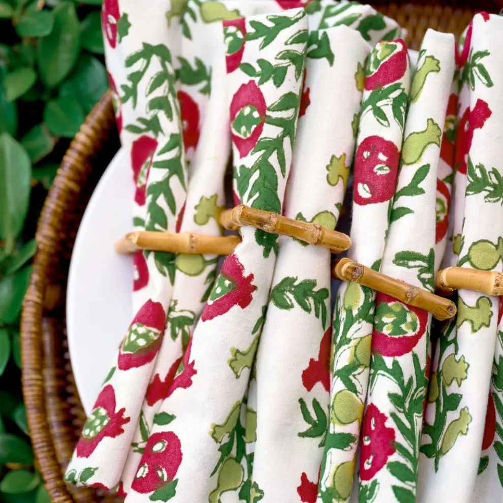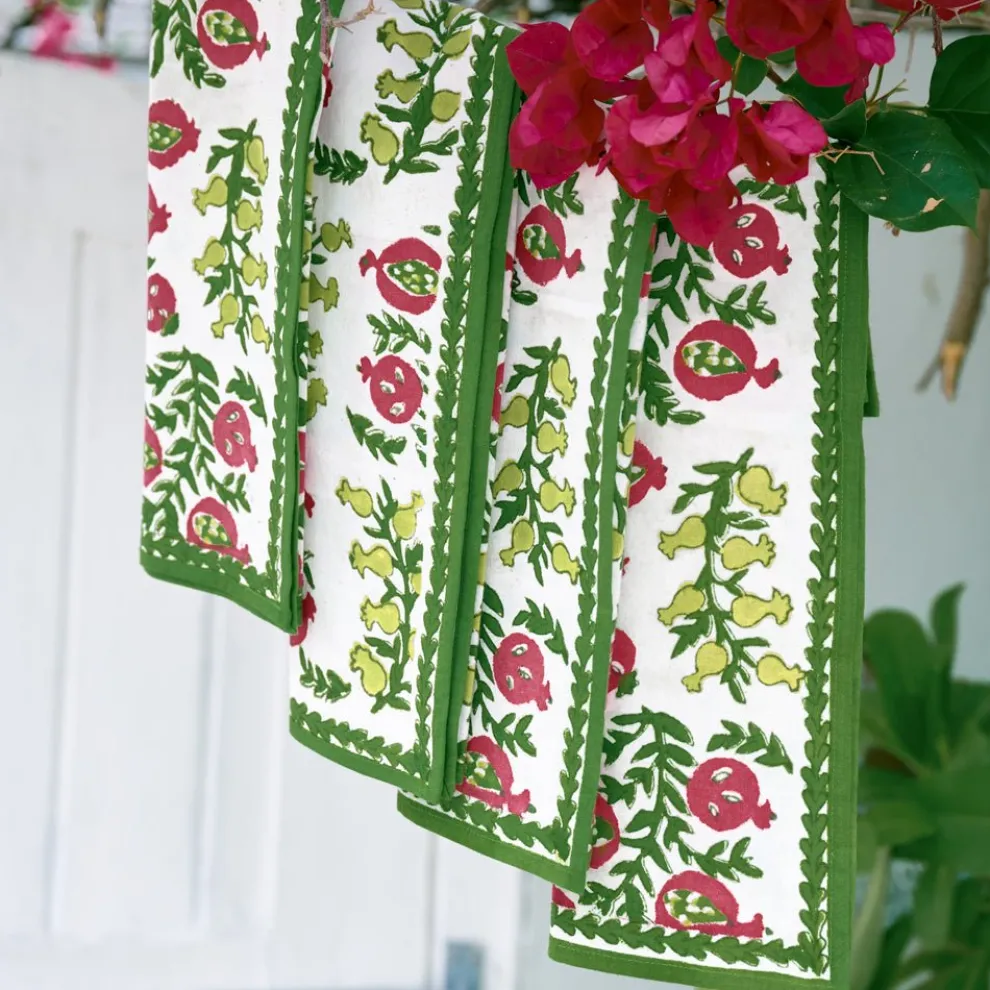 These cheerful hand block printed napkins will brighten up your table and cheer up your day. Perfect for casual everyday use as well as entertaining and gatherings with family and friends. Inside, outside, in the garden and up in the mountains, they fit in everywhere! Pair with matching tablecloth and placemats to complete the elegant yet casual look.