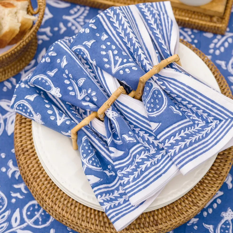 Pomegranate Blue is our brand’s signature print. Decorated in a distinctive, handpainted Pomegranate surrounded by lively fleurettes and a complimentary border, these napkins add an at-home and welcoming look to your table setting. Sold in sets of 4.