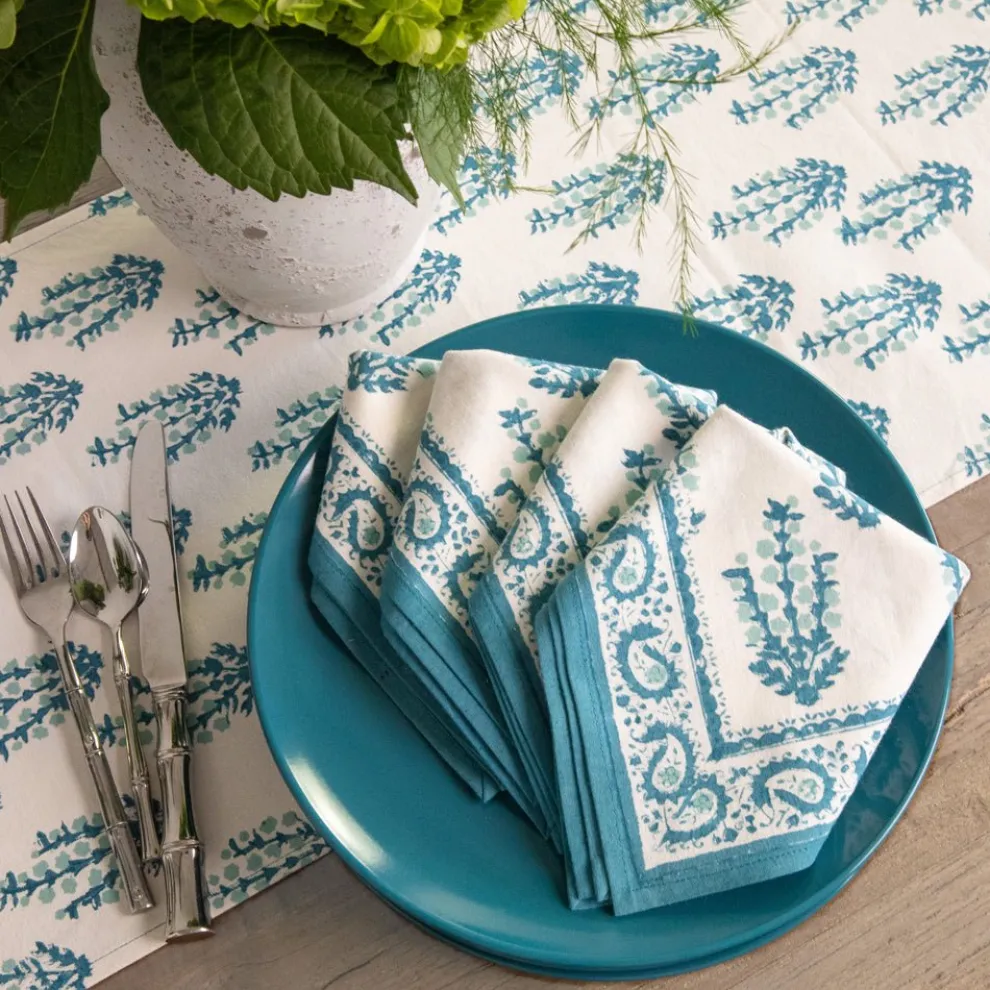 Introduce a touch of timeless elegance to your dining table with the Sagar Aqua Napkins. This set of four napkins features a stunning hand block printed design in serene aqua tones, adding a sophisticated and artistic flair to any meal. Made from 100% cotton, these napkins are soft, durable, and machine washable, ensuring they remain a stylish and practical addition to your table setting for years to come.
