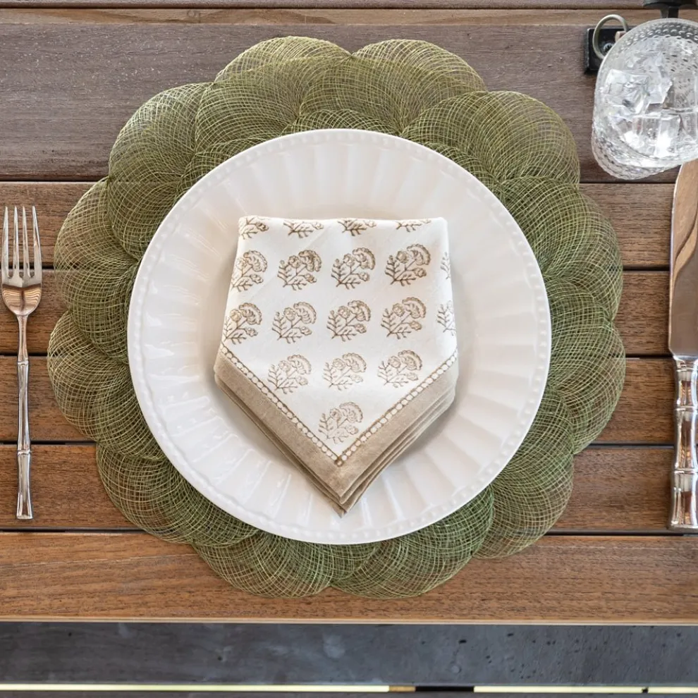 Add just the right amount of layers & texture to your table setting with our exclusive Woven Cloud Placemats in Fern. These round natural fiber placemats wipe clean with a damp cloth so they are practical for everyday use, yet they remain elegantly refined for your finest dinner party.