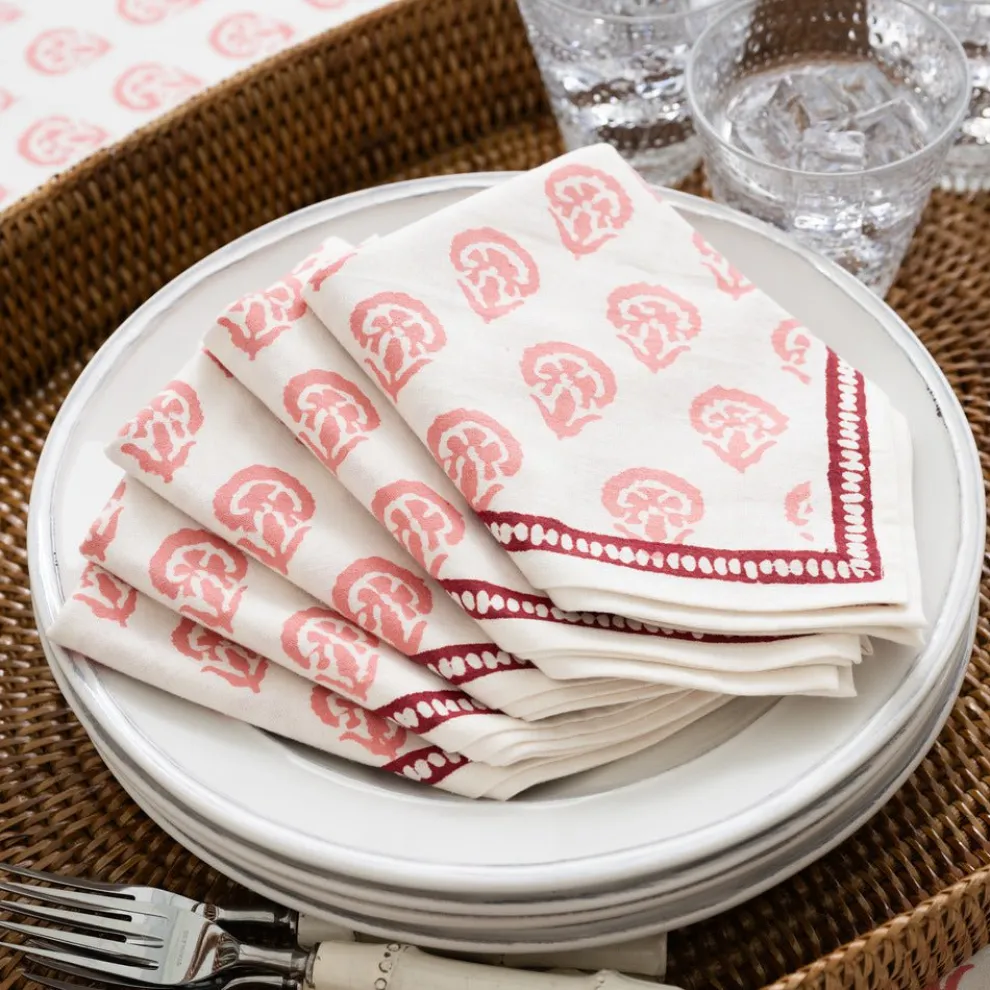 This beautiful set of 100% cotton hand blocked printed napkins in Carnation Blush is intended to be mixed haphazardly together with the other patterns, just as our families are.