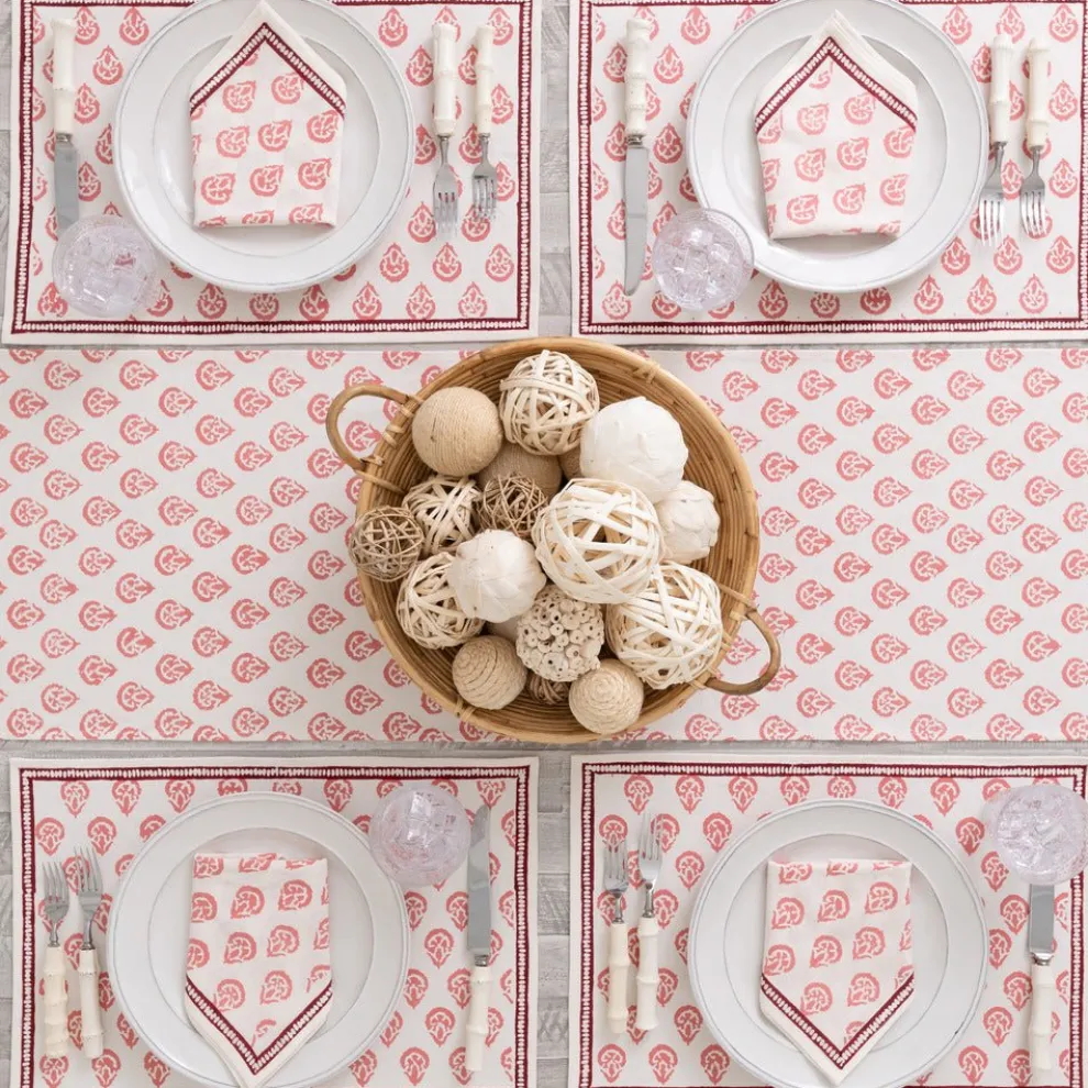 This beautiful set of 100% cotton hand blocked printedplacemats in Carnation Blushis intended to be mixed haphazardly together with the other patterns, just as our families are.