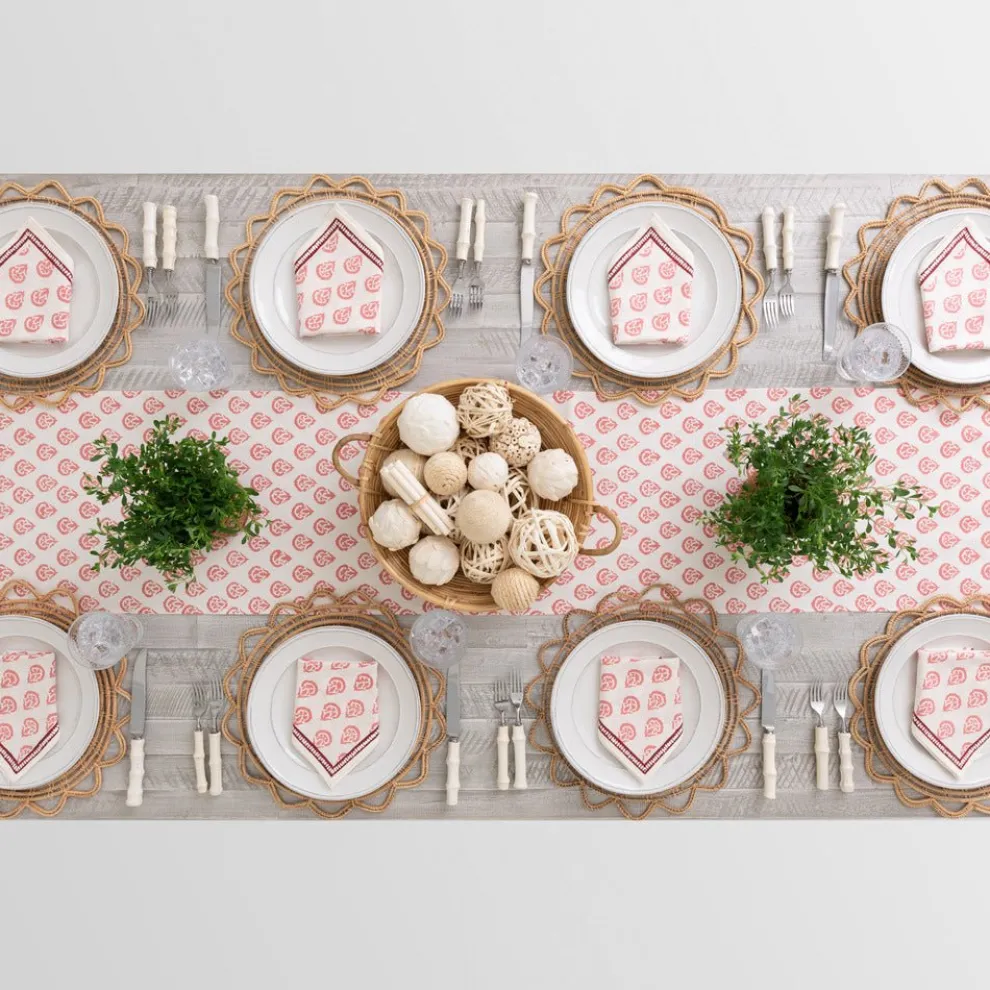 This beautiful 100% cotton, hand blocked printed Table Runner in Carnation Blush is intended to be mixed haphazardly together with the other patterns, just as our families are.