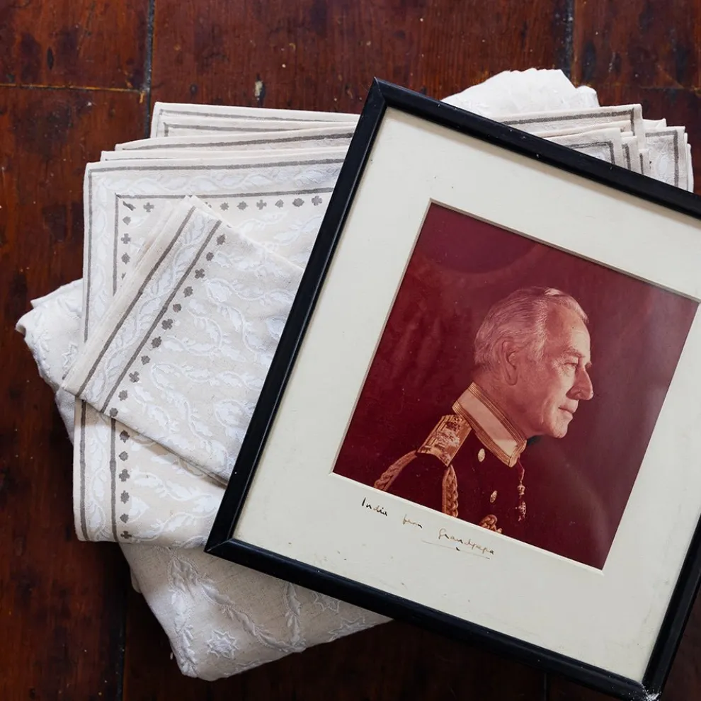 In the olden days, what we now see as the gold shoulder braid on high-ranking officers—called an aiguillette (pronounced “egg-wee-let”)—was originally just rope and pegs. It was carried on the shoulder by a knight’s aide-de-camp, ready to tether the knight’s horse. The ornamental braided cords with decorative metal tips are now worn on uniforms by officers to distinguish special and senior appointments, but wouldn’t it be fun if they were still used to tether the occasional horse? This hand block printed Chevron patterned placemat set draws its inspiration from those striking gold braids.