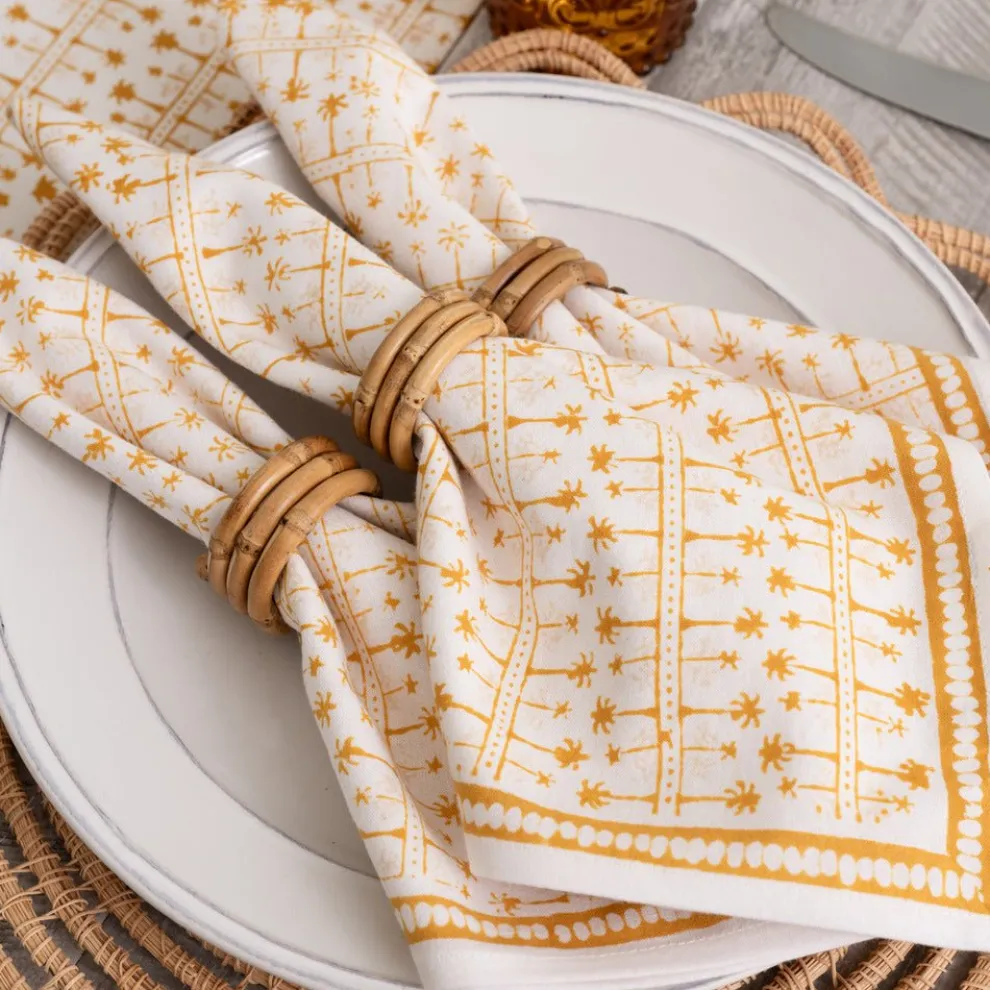 This beautiful set of 100% cotton hand blocked printed napkins in Palm AvenueGolden is intended to be mixed haphazardly together with the other patterns, just as our families are.
