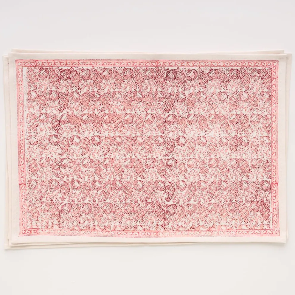 This beautiful set of 100% cotton hand blocked printedplacemats inSeashell Blush is intended to be mixed haphazardly together with the other patterns, just as our families are.
