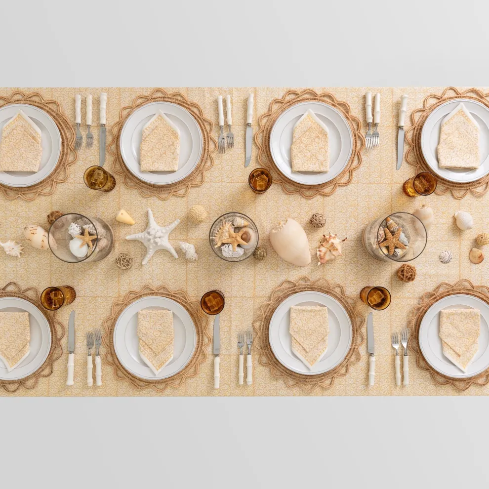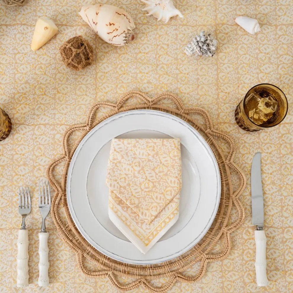 This beautiful 100% cotton, hand blocked printedTablecloth inSeashellGolden is intended to be mixed haphazardly together with the other patterns, just as our families are.