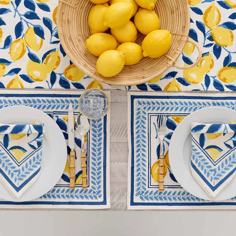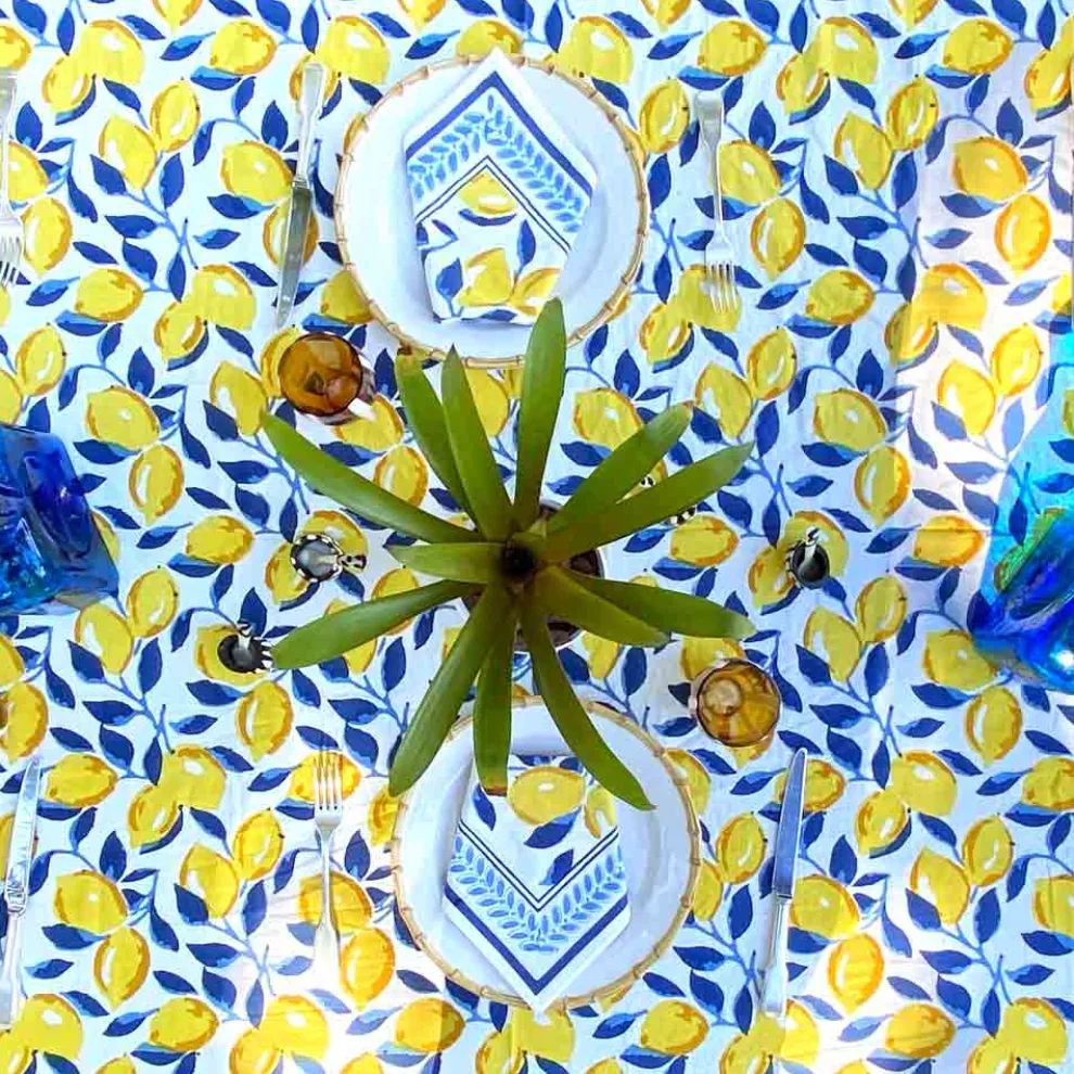 We all love lemons…and the combo of blue and yellow is just amazing on this exclusive print. The block printed napkins are sure to put a smile on every table they meet!