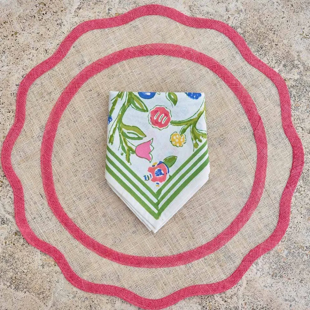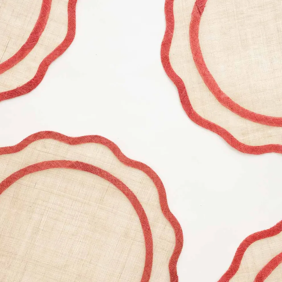Our red edged scalloped round rice paper placemats will add just the right amount of elegance to your table. These chic placemats wipe clean with a damp cloth so they are practical for everyday use, yet they remain elegantly refined for your finest dinner party.