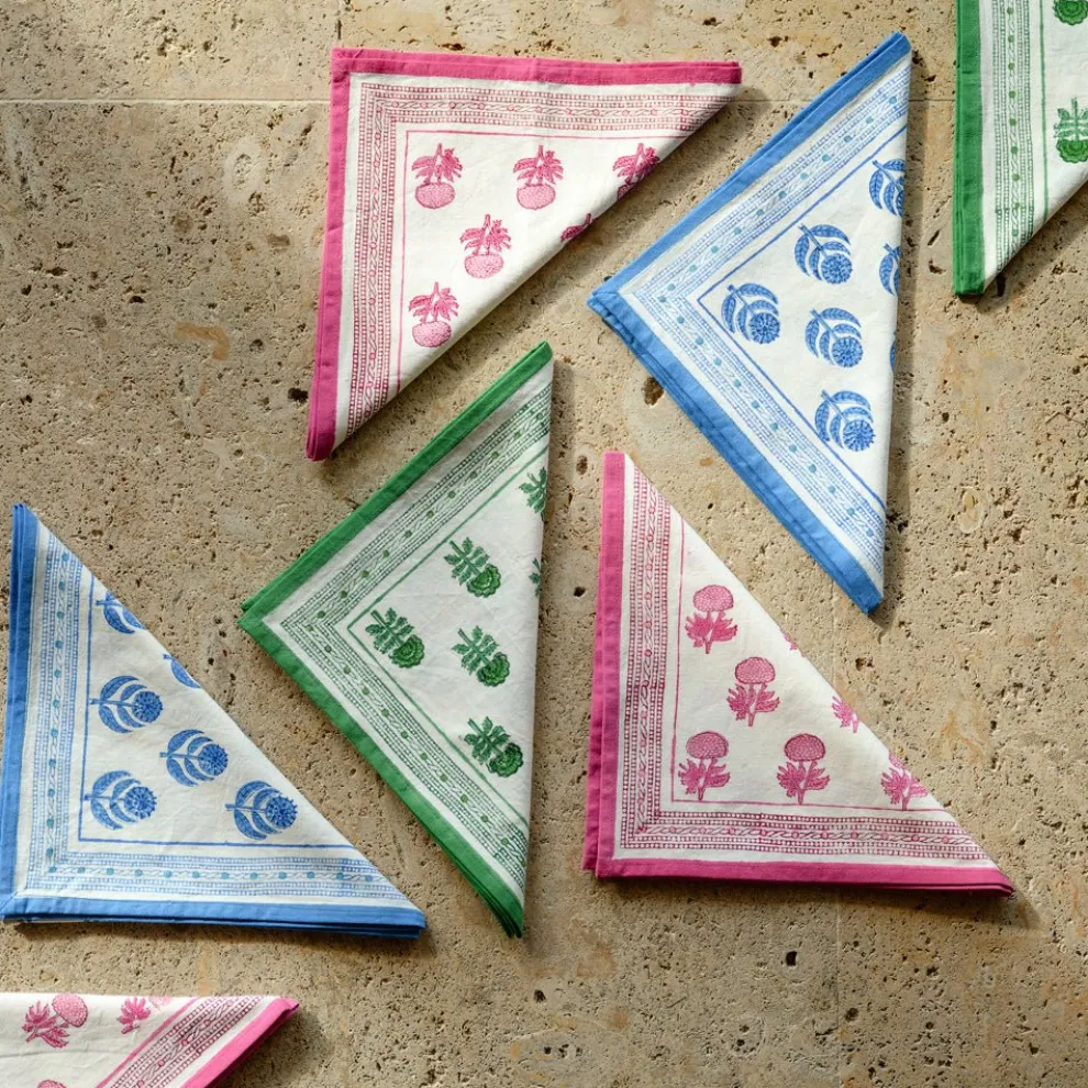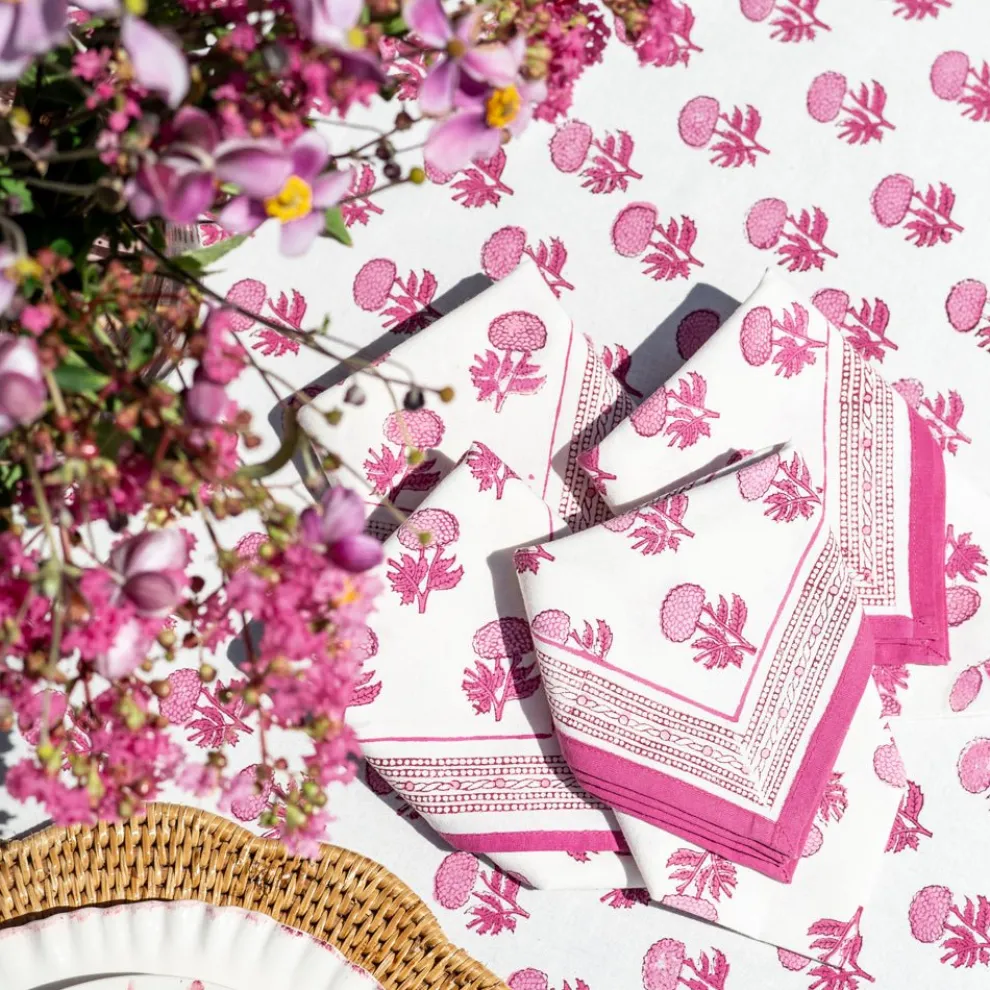 Our latest exclusive rose pink and white print is refreshing yet cool. Traditional and exotic, all at the same time. Cheer up your table with the bright pink and white updated Indian motif napkin, and pair with matching tablecloths and placemats. A perfect gift for your mom, best friend, neighbor…oh, and for you!