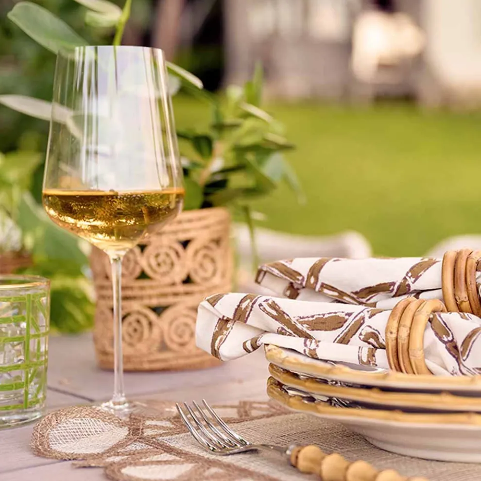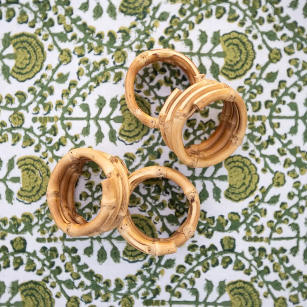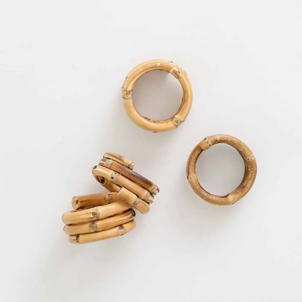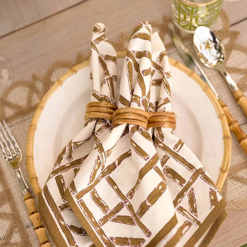 Crafted of natural bamboo, these wrapped bamboo napkin rings are elegant and relaxed, practical yet elegantly chic at the same time. Lightweight, natural, and versatile, they match all of our printed napkins